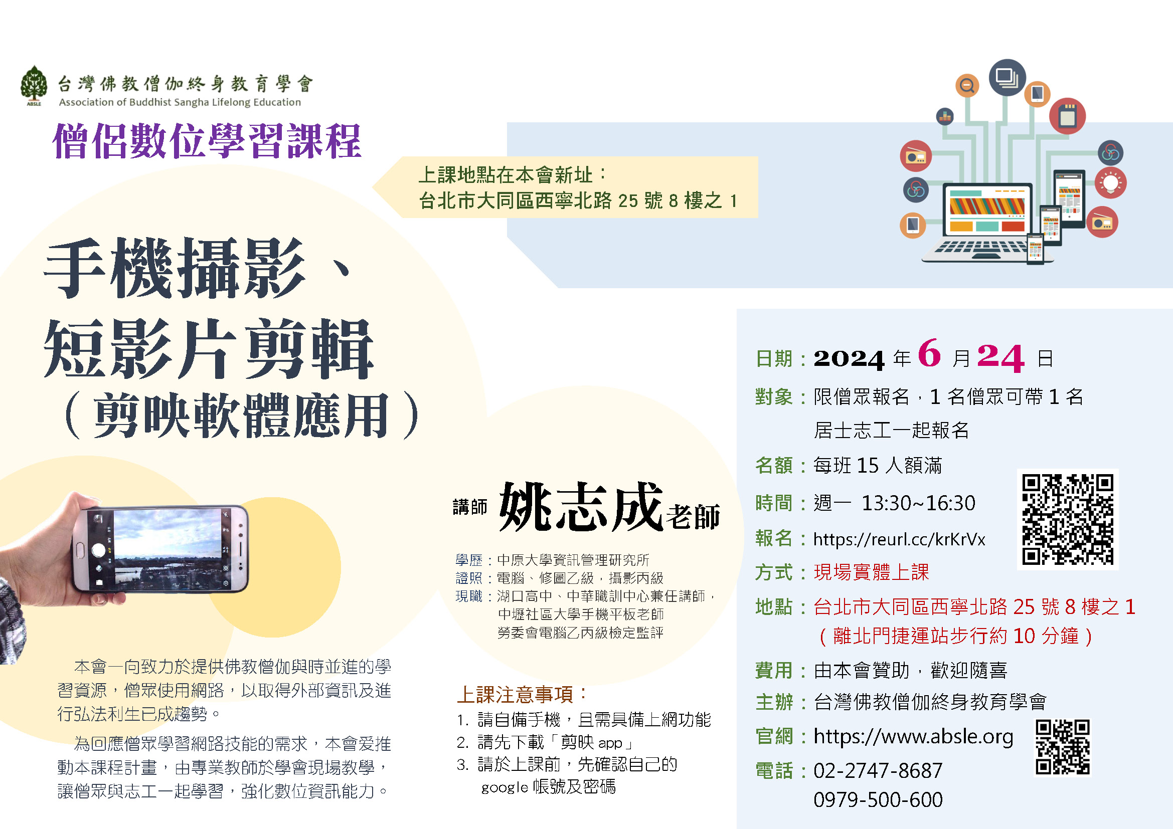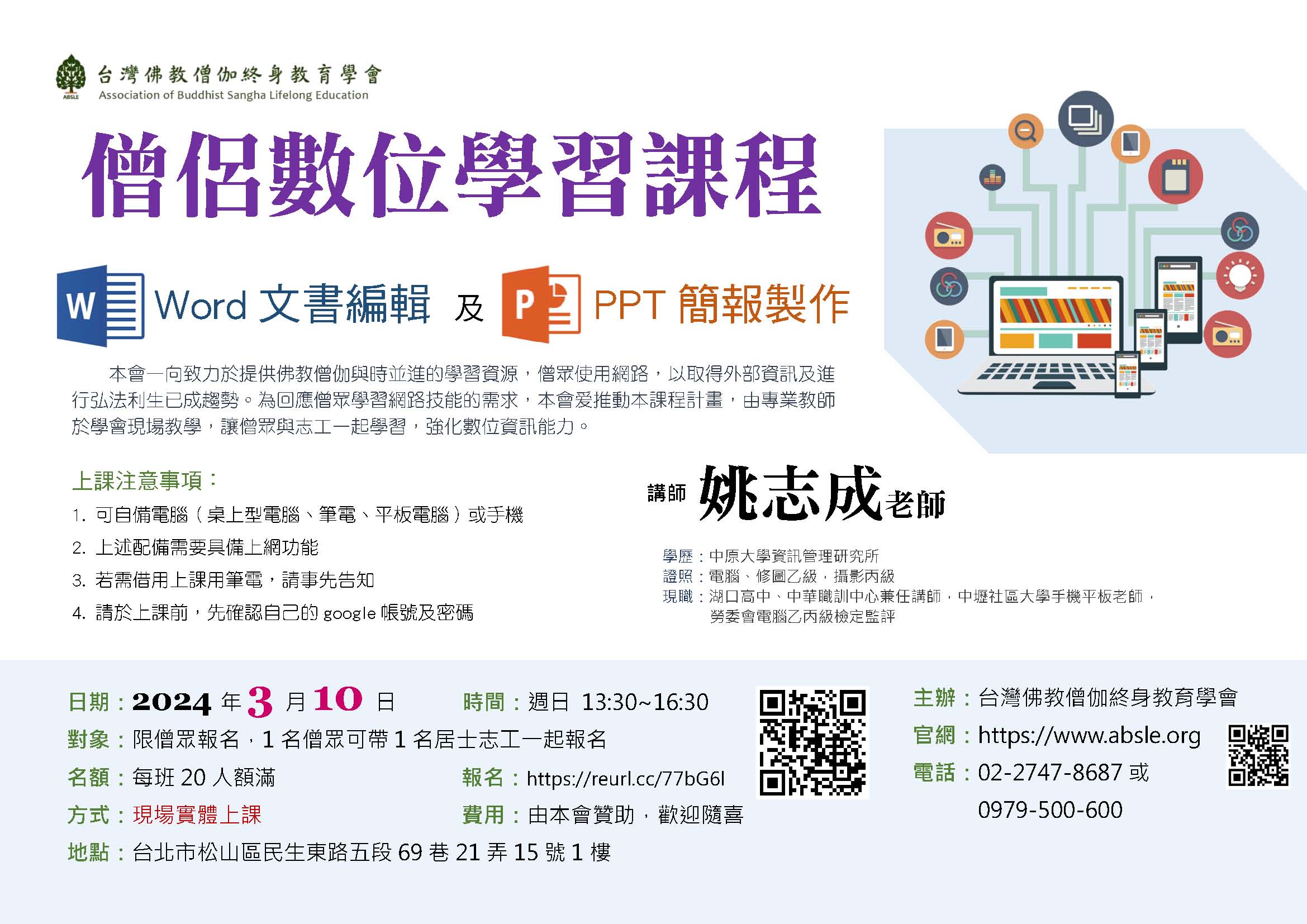 參加對象:限僧眾報名,有參加 9/28 10/14「僧侶數位學習課程」者,可直接參加 不須再次報名