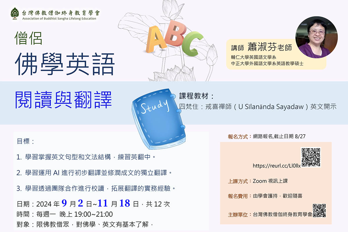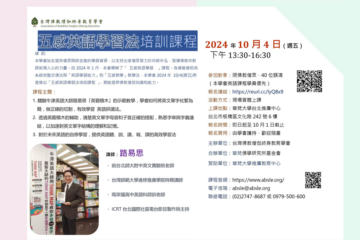 合辦單位:台灣佛教僧伽終身教育學會, 財團法人華梵佛學研究所
