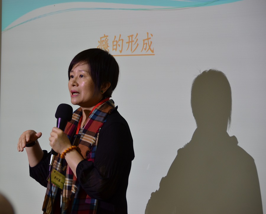 圖一:「戒癮志工培訓二日研習營」大合照圖二:研習主題(一):「藥物成癮的形成與協助方式」——李昭慧心理師主講