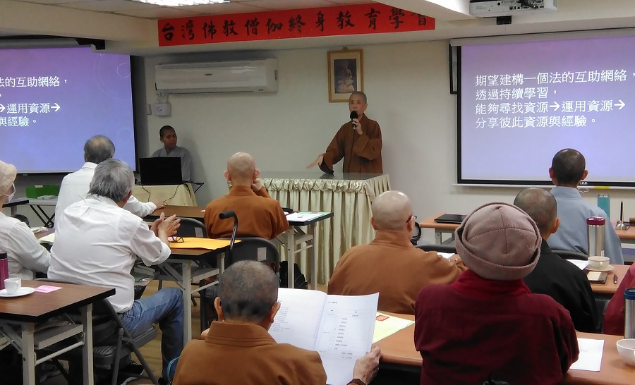 本會成立於2015年1月5日,經過成立前的三年籌備期以及成立後三年的穩定發展,今年將正式邁入第二屆。首先,大會主席暨學會理事長自鼐法師致歡迎詞。接著貴賓致詞,此次邀請到台北市社會局黃副局長清高,以「宗教師對高齡化社會的參與」為題。黃副局長指出:「健康的身體、健全的精神、自足的經濟」是人類重要的資糧。然而,人類的存活卻必須仰賴「互助」,因為人類靠互助系統在運作。因此,大的系統由政府撐起來,小的系統靠社區來支援。政府、社區可以協助生命的安頓,而心靈的安頓則是寺院可以大大發揮其功能的契機。副局長所指出的方向,帶給與會者一份責任和榮譽感。